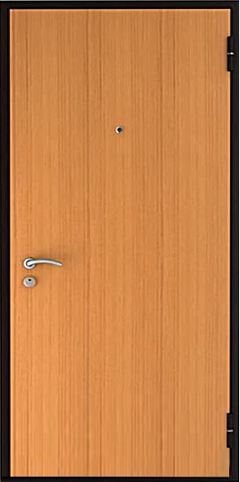 Ламинат - это доска из ДВП толщиной 4-5 мм с четырехслойным покрытием. Визуально он не отличается от натуральной древесины. Рисунок ламинированной доски может быть гладким и имитировать древесный спил или рельефным, имитирующим структуру дерева. Разнообразная цветовая гамма этого материала позволяет изготовить дверь, которая будет отлично смотреться в интерьере как квартиры, так и офиса.