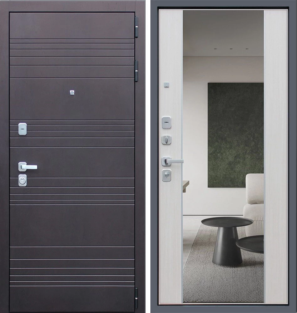 Надежная входная Дверь Дуэт с зеркалом премиум класса по цене 47 069 руб. Большая толщина стали защитит от проникновения в ваш дом, квартиру или коттедж. Используется очень качественная фурнитура: замки, цилиндры, ручки, защелки. Покрытие и отделка двери изготовлено под внимательным контролем производителя. Дверь имеет долгий срок службы и гарантию.