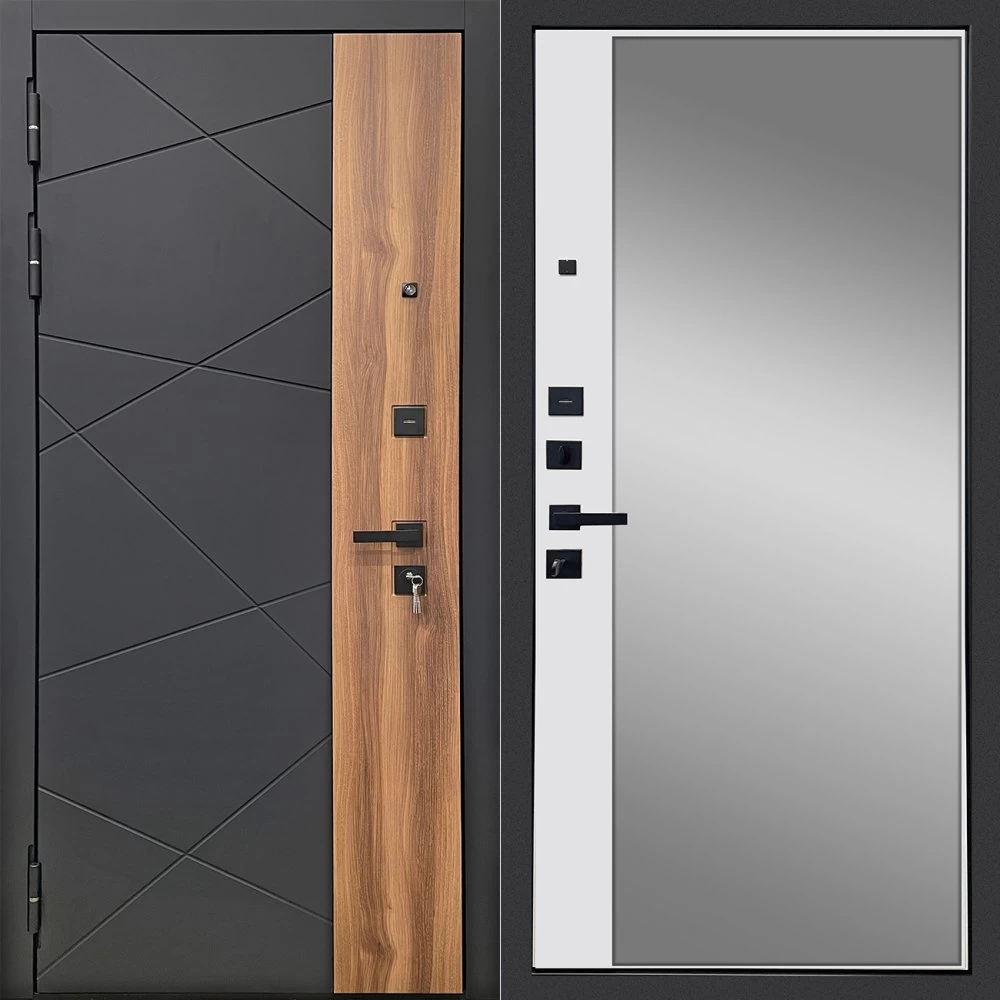 Дизайнерская входная Дверь Ратибор РАКУРС 3К ЗЕРКАЛО класса Люкс с несколькими листами стали, звукоизоляцией и теплоизоляцией. Утепленный короб и полотно защитят от сквозняков и шумов. Модель не только надежная, комфортная, защищенная и высочайшего качества, но и очень красивая! Будет отлично сочетаться с интерьером дома, квартиры или офиса. Сейчас действует выгодное предложение по цене: 55 369 руб.